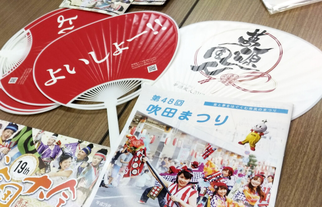 吹田まつりに合わせてうちわが到着!思った通りの出来にたかまるぅ。QRコードもちゃんと読み取れるかなあ??