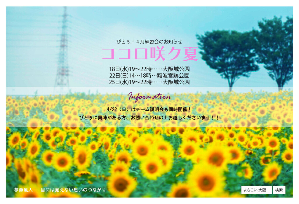 ※22日(日)は難波宮跡公園に変更になりました。 まずは練習会に遊びに来てくださいね!お問い合わせはお気軽に! お待ちしています(^-^)