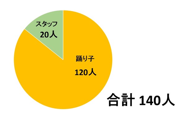 ぴとぅメンバーは計140人。 大阪・関西ではかなり大所帯のチームになります。 登録者のうち「今年ぴとぅに入った人」はざっくり30人強です。同期が多いのは心強いもので、自分だけ新参者のメンタルアウェイになる心配はあまりありません。 踊り子は120人で、このうち100人弱が昨年の高知よさこい祭りに参加しました。