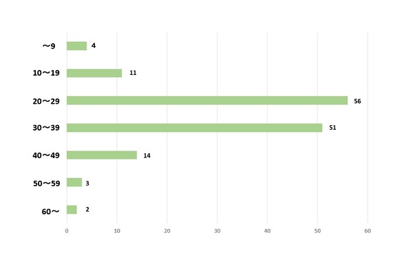 男女比は、キレイに「男子:女子=1:2」となりました。 ぴとぅに限らず、よさこいプレイヤーには女子のほうが多い所感です。 「男子の肩身が狭いのでは……??」と心配される方がいるかもしれませんが、たぶん大丈夫だと思います。たぶん。ねえ男子。大丈夫だよね。ちょっと男子~~! ちなみに、ぴとぅは過去に