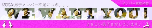 (これは過去につくった画像です) そして、ぴとぅは男性メンバー大大大大募集中です。 ※念のため繰り返しますが「女性も大歓迎」です なぜ「男性メンバー大募集!!」を声高に叫ぶのか。 チームの女性陣が男の生き血を求めている、とかではないです。 現代表のあきべー曰く 「現在ぴとぅの男女比は1:2ですが、かつてはほぼ1:1でした。 これは男が減ったというより、女性メンバーが増えているらしいんですね。ありがたや。『女性メンバーの増加は最大限感謝しつつ、もっと老若男女問わずいろんな人たちと一緒によさこいを楽しみたい』という思いがあります」 とのこと。 男も女も老いも若きもバランスよく、どこかにググっと傾くことなく、どんな方でも共によさこいを楽しめるチームでありたい。 からの、男性メンバー大募集です。