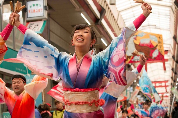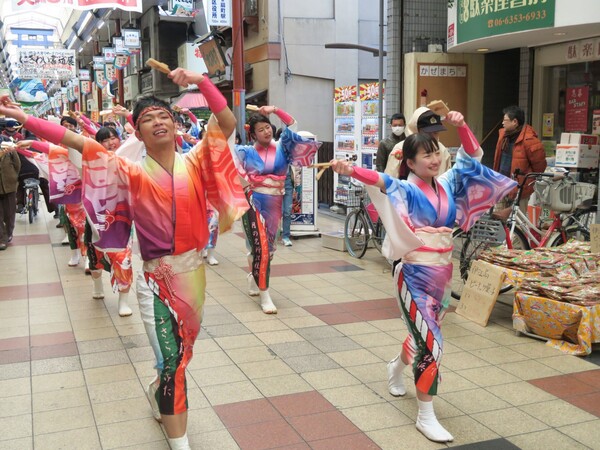 食べ歩け、飲み歩け、散歩やお買い物も存分に楽しめるスーパーロング商店街・天神橋筋商店街。 2月2日はこの場所で、私たちもスーパーロングなよさこいパレードをお披露目します。