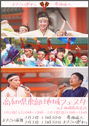 夢源風人(ぴとぅ)ブログをご覧のみなさん、こんにちは。 広報・ブログ担当のむっちゃんです。 みなさん、2月2日はなんの日かご存知ですか? 節分イブ? 誰が何すんのそれ。 ではなく、この日は「高知県東部地域フェスタ in 天神橋筋商店街」の開催日です。