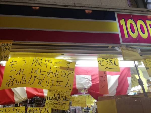 主張の激しすぎる100円均一ショップ。 ぞうきんのポップ下に「おいしいフラン」を貼る感じとか唯一無二のセンスが好き。
