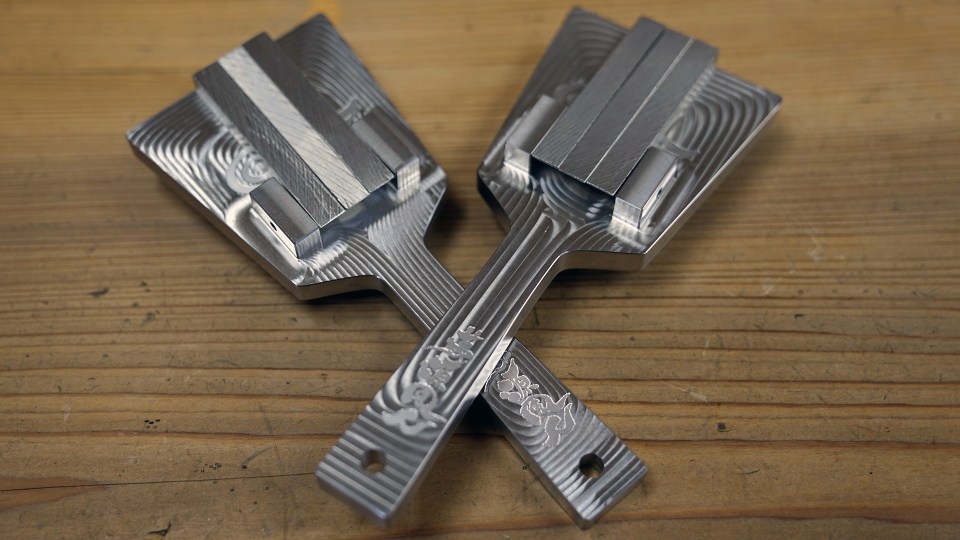 比重7.93g/cm3 今回は鳴子1つあたり長さ25cm、幅4cm、厚み10cm、重さ8kgの金属塊を用いて完全削りだしで鳴子を製作していく。余談だが話を聞いて「え、マジでこんなおっきいのから削り出すの?」とびびった。
